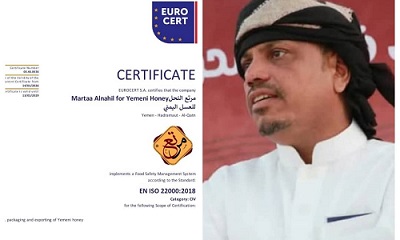 In a significant achievement that adds to its record of excellence in the food products sector, Yemeni Honey Pasture Company has received the ISO 22000:2018 certification for its Food Safety Management System. This certification, awarded by EUROCERT S.A., was granted after the company successfully passed audits and assessments according to internationally recognized standards.